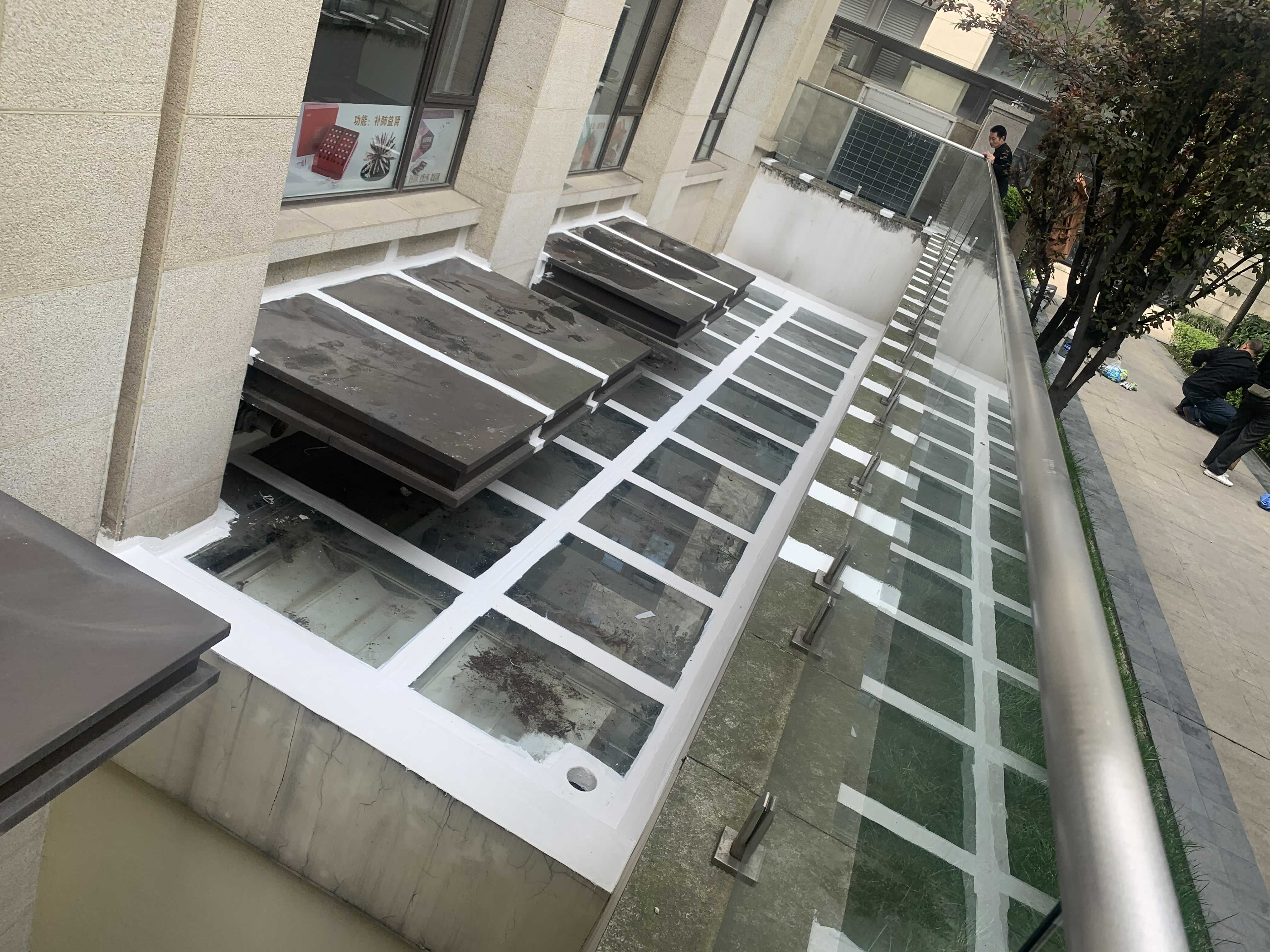玻璃頂屋面漏雨的情況比較常見,常規(guī)的方法是打密封膠進(jìn)行處理,但是玻璃頂在夏季太陽暴曬下熱脹、夜間收縮變形,這樣反復(fù)變形時間久了,由于玻璃之間縫隙較窄,結(jié)構(gòu)膠就出現(xiàn)了開裂的情況,這就是為什么玻璃接縫過幾年漏雨之后,反復(fù)打膠依然無法很好的解決漏雨的問題,我公司采用的是SYR金屬屋面專用防水涂料配合專用縫織聚酯布進(jìn)行一布三涂的方式進(jìn)行施工,SYR金屬屋面專用防水涂料外露型的柔性防水涂料可以裸露使用并且具有一定的柔性神所率,所以用來處理玻璃接縫之后防水效果很好,并且耐久性也比較好。