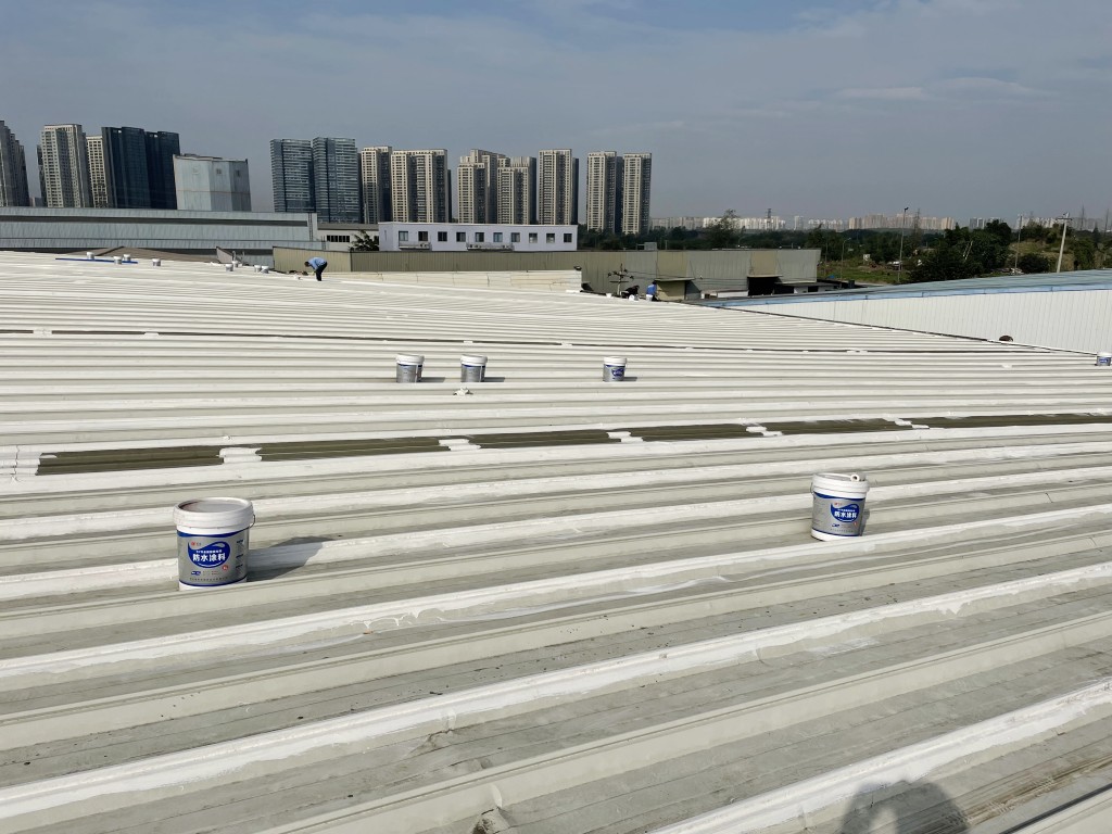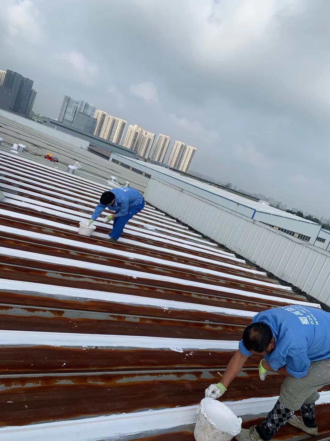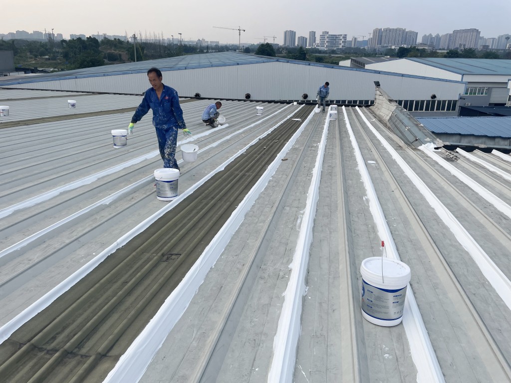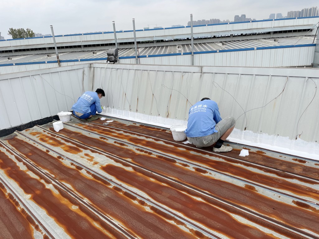 啟陽汽車華陽園區(qū)豐田鈑金車間與美容區(qū)及洗車區(qū)彩鋼頂防水工程由成都蜀禹建筑防水工程有限責任公司2021年8月進行施工,廠房為鋼結(jié)構(gòu)的彩鋼頂,彩鋼頂漏水點位較多,并且豐田接車雨棚位置一塊區(qū)域彩鋼頂表面生銹了,先針對彩鋼頂進行防水處理之后此處還對彩鋼表面滿涂SYR金屬屋面防水系統(tǒng)進行防銹施工。此次針對此廠房頂部采用蜀禹SYR金屬屋面專用防水涂料配合專用縫織聚酯布進行施工處理,處理后經(jīng)多次下雨檢驗驗收合格。