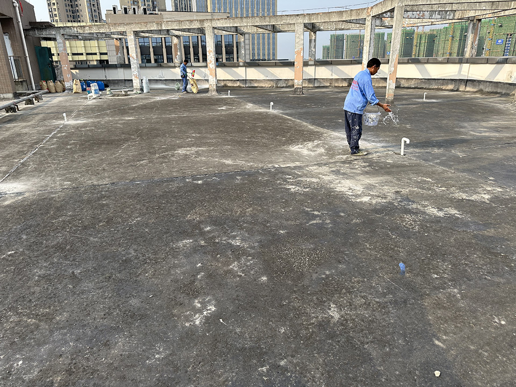 屋頂基層表面涂刷混凝土液體硬化劑進(jìn)行基面固化處理