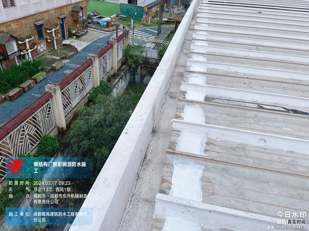成都市東升機(jī)械制造有限責(zé)任公司廠房彩鋼頂及天溝防水補(bǔ)漏工程案例介紹
