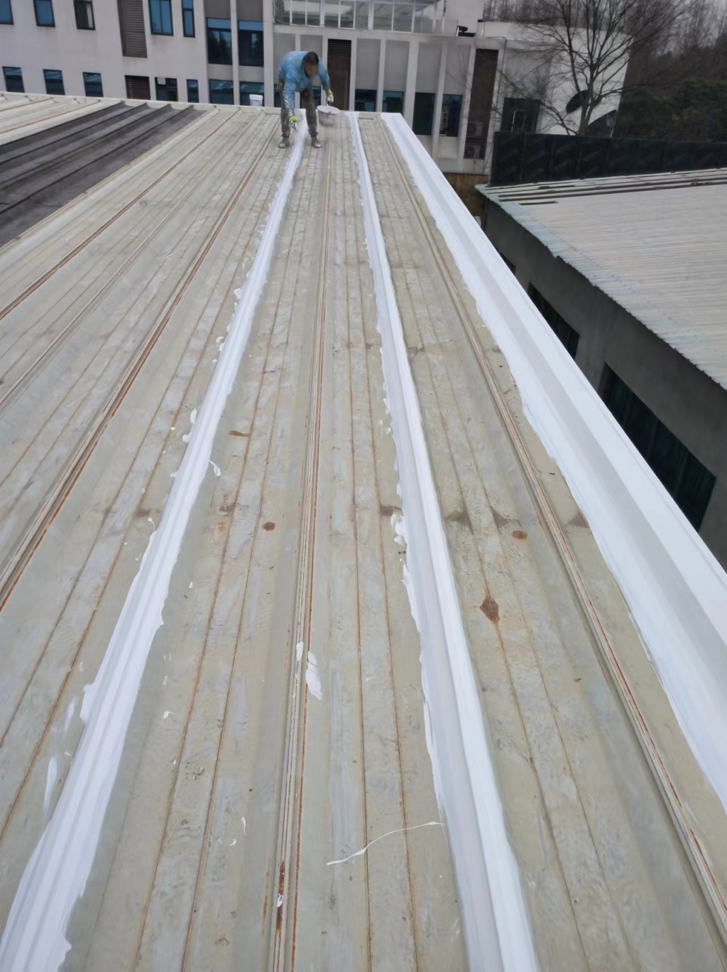 在天溝部位的處理上,成都蜀禹建筑防水工程有限責(zé)任公司同樣采用了SYR金屬屋面專用防水涂料進(jìn)行滿涂刷。對于天溝內(nèi)銹蝕嚴(yán)重的地方,公司首先采用彩鋼板進(jìn)行修補(bǔ),然后在生銹的地方涂刷免除銹納米固銹劑進(jìn)行基面固銹處理。這一步驟不僅有效去除了銹蝕,還為后續(xù)的防水防腐處理奠定了堅(jiān)實(shí)的基礎(chǔ)。