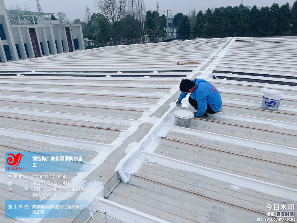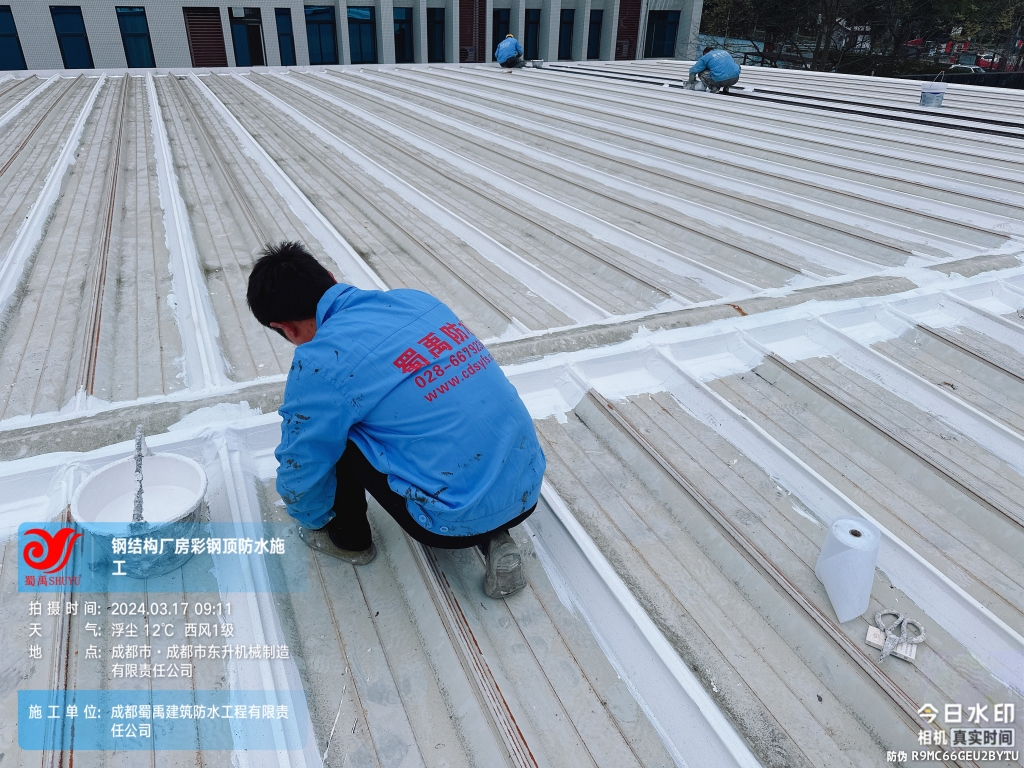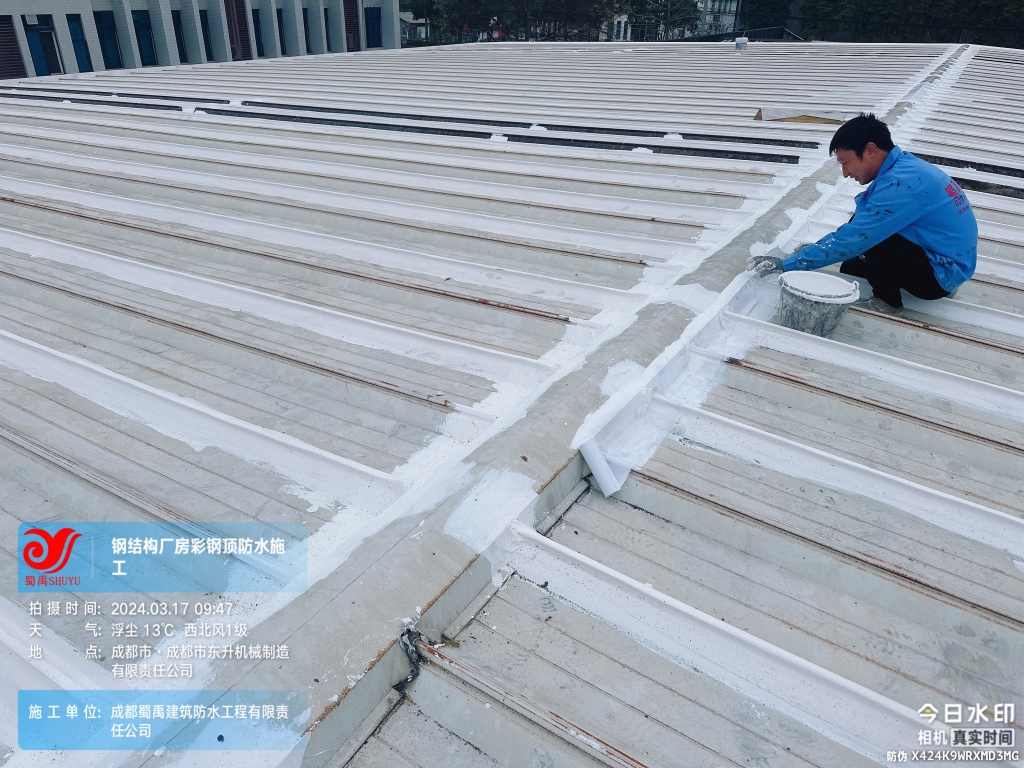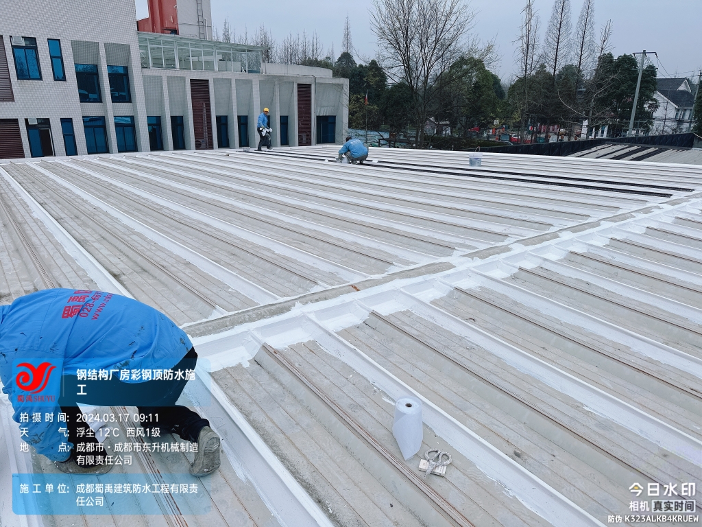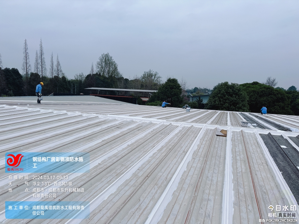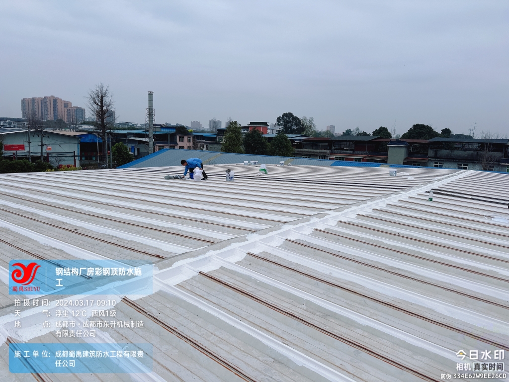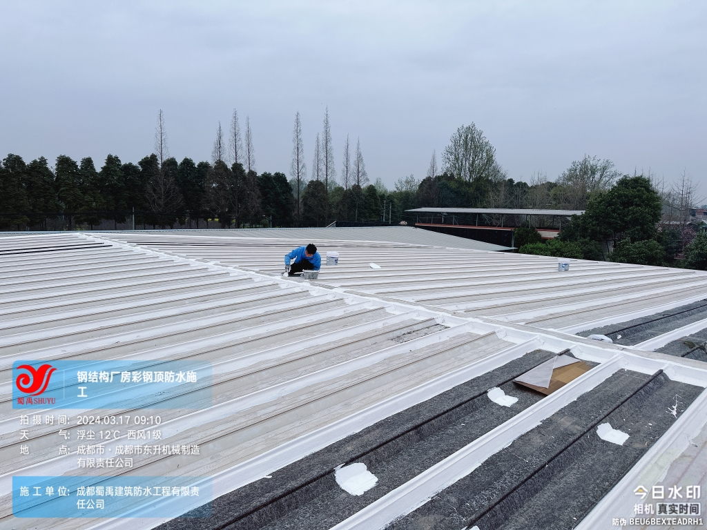 近日,成都蜀禹建筑防水工程有限責(zé)任公司成功完成了成都市東升機(jī)械制造有限責(zé)任公司位于溫江區(qū)廠房的彩鋼頂及天溝防水補(bǔ)漏工程。此次工程旨在解決廠區(qū)內(nèi)廠房彩鋼頂屋頂表面的彩鋼瓦接縫、固定螺釘、天溝等部位的防水問題,確保廠房的防水性能得到有效提升。