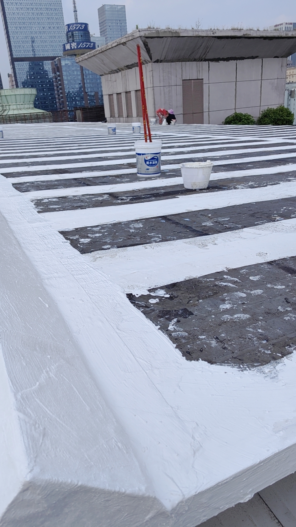 在完成關鍵部位的防水處理后,公司對整個彩鋼頂面進行了滿滾涂兩遍SYR金屬屋面專用防水涂料的操作。這一步驟不僅進一步加強了彩鋼頂的防水性能,還提升了其防腐能力,有效延長了彩鋼頂的使用壽命。