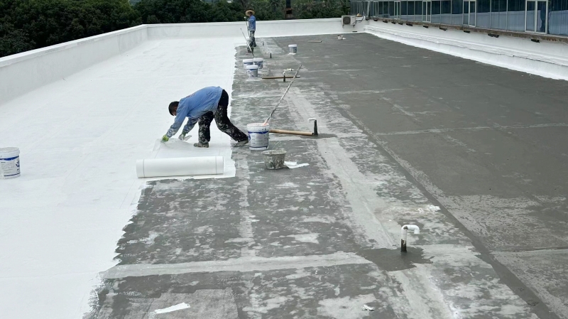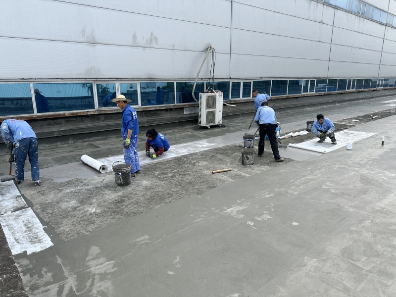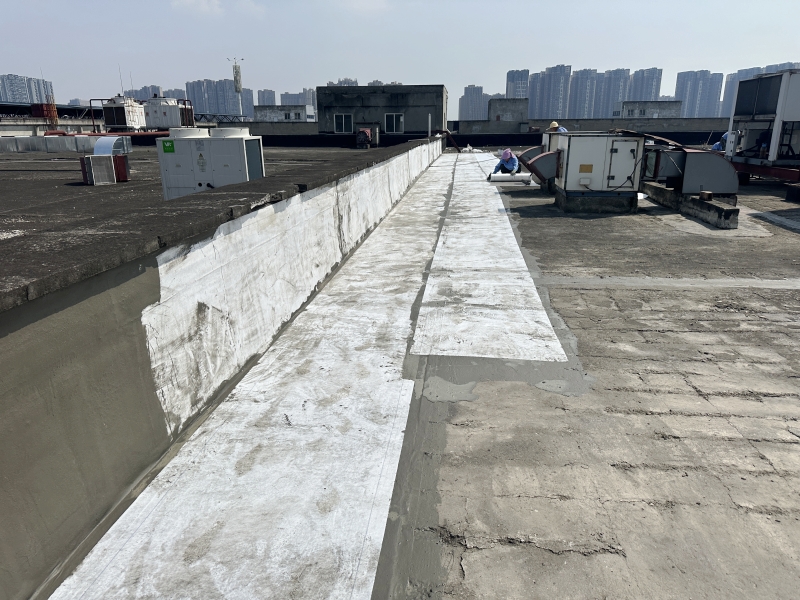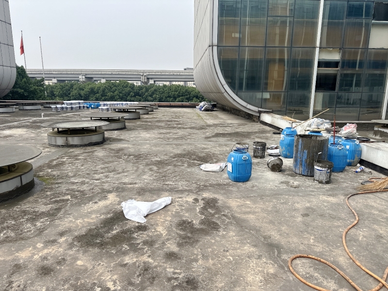 1. 基層處理:首先,施工團隊對屋頂表面基層進行了徹底的清理,確保無灰塵、油污等雜質,為后續防水層施工打下堅實基礎。針對基層表面的局部不平整和翻砂現象,進行了砂漿修補和涂刷混凝土液體硬化劑處理,有效增強了基層的強度和穩定性。