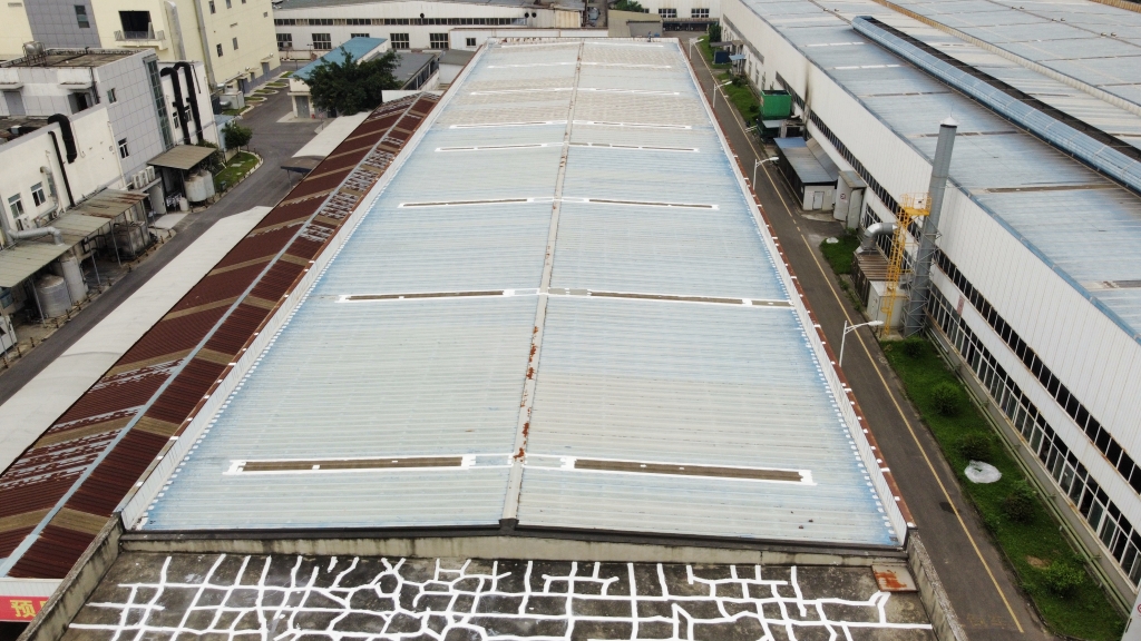 面對這一挑戰,成都蜀禹建筑防水工程有限責任公司迅速響應,組織專業團隊對現場進行了全面勘查,并制定了針對性的修復方案。方案的核心在于采用SYR金屬屋面專用防水涂料配合專用縫織聚酯布進行一布三涂的防水處理。這種處理方式不僅能夠有效解決現有滲漏問題,還能增強屋面的整體防水性能和耐久性,為廠房提供長期保護。