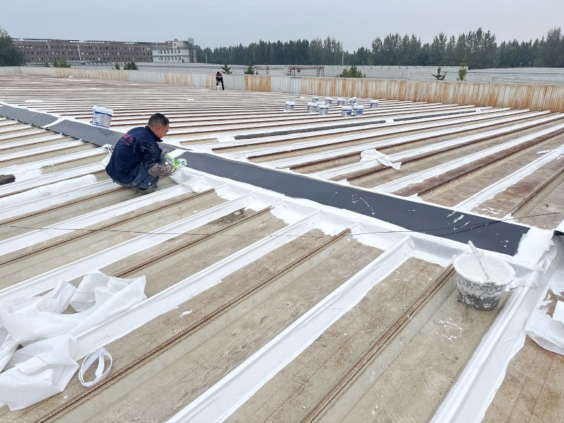 在彩鋼瓦表面的搭接縫處,蜀禹防水公司也采用了SYR金屬屋面防水涂料配合縫織聚酯布進行重點防水密封處理。這一步驟能夠確保搭接縫處的密封性,防止水分從縫隙中滲入,從而進一步提高整個彩鋼頂的防水性能。