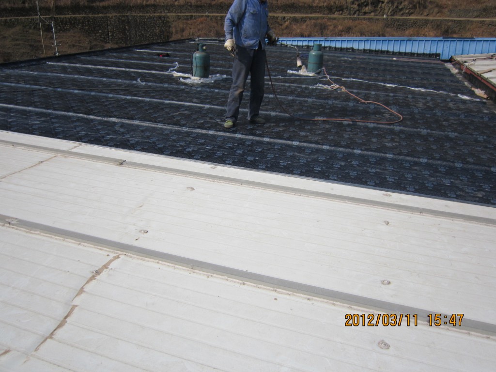 甘洛縣吉日波水電站位于四川省涼山彝族自治州甘洛縣境內,吉日波水電站的車間頂部采用彩鋼頂修建,車間經過一些年代后陸續出現多處漏水,期間經過多次小修小補效果均不理想,甘洛縣吉日波水電站于2012年2月找到本公司業務員,本公司派人前往查看現場后,最終采取的方案是在彩鋼瓦頂不全做一層4mm玻纖胎SBS改性瀝青防水卷材,本公公司于2012年3月10日開始施工,施工后效果非常好,截至今年前段時間的回訪,吉日波水電站車間彩鋼頂的防水效果依然非常好。