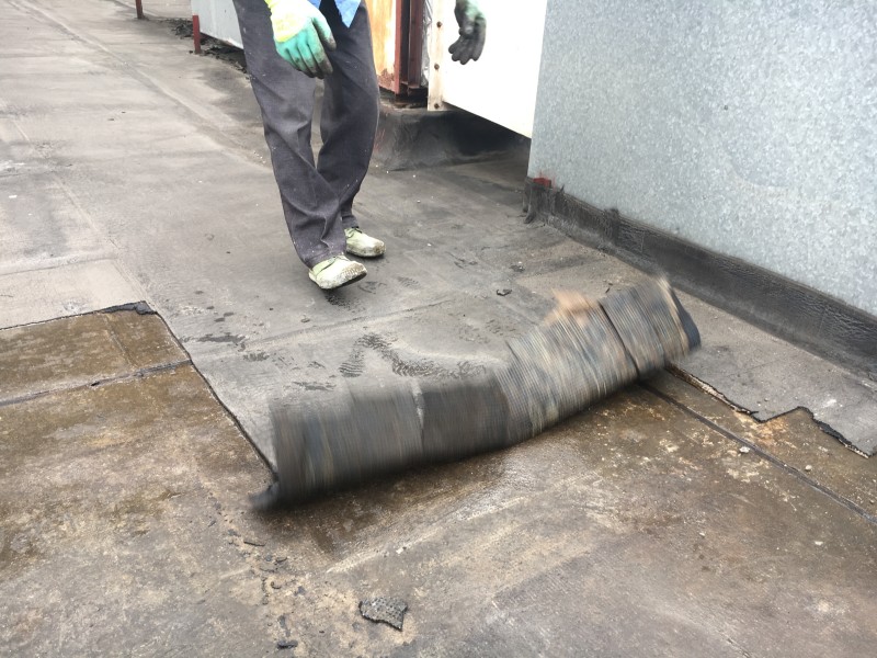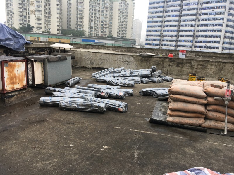 四川省人大常委會辦公廳1號樓會議室屋頂防水為我公司采用國標一型PET濕鋪防水卷材施工,會議室屋頂以前修建的時候采用的改性瀝青防水卷材施工,由于個別局部位置沒有處理好,水漏到了防水卷材底下去,水在防水卷材底下到處竄水,導致了會議室頂部多處漏水嚴重,后面其他單位給他們維修時又還是采用了改性瀝青防水卷材施工,但是施工后由于屋頂上局部地方有空調設備等不是很好施工,防水卷材施工后還是漏水,最終我公司給制定了采用國標一型PET濕鋪防水卷材的施工方案,先局部試驗,后經檢驗認可最終確定我公司對四川省人大常委會辦公廳1號樓會議室屋頂采用國標一型PET濕鋪防水卷材施工,施工后效果非常理想。